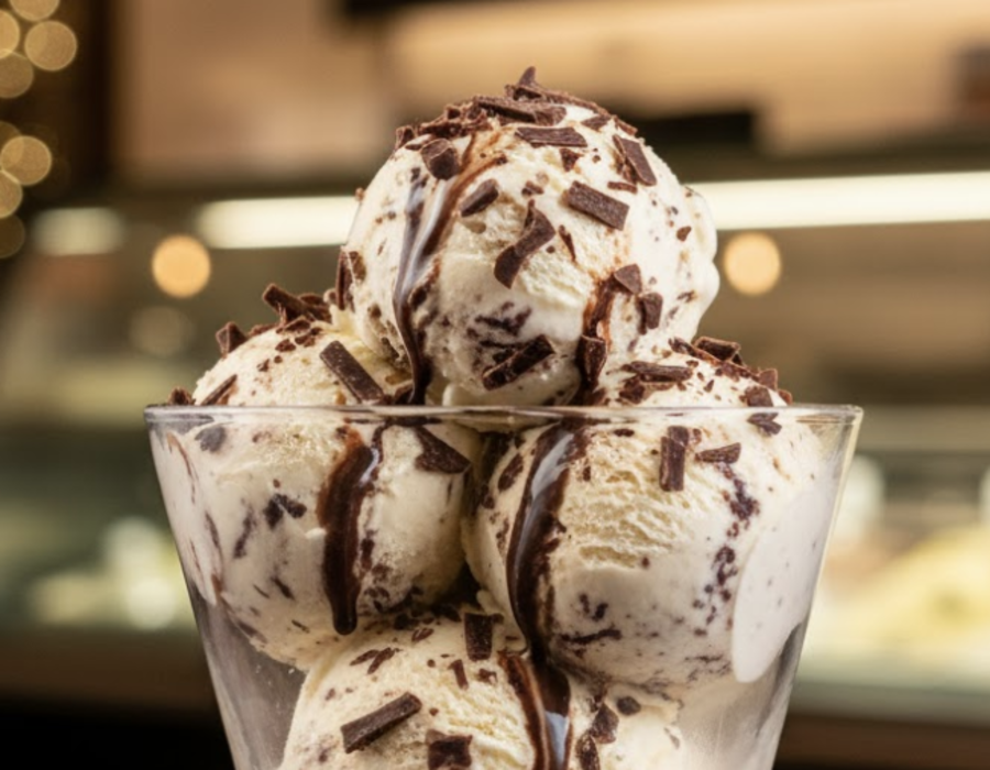 Cremosa vainilla con crujientes trocitos de chocolate negro fundido en cada bocado